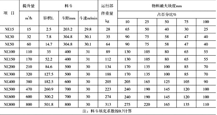 NE( TB)斗式提升機采用流入式喂料,混合式或重力式卸料方式卸料。且采用密集型布置的大容量的料斗輸送,鏈速低,提升量大。